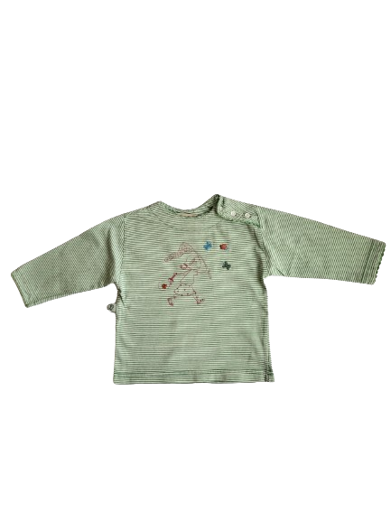 Tee-shirt blanc rayé vert manches 12 mois